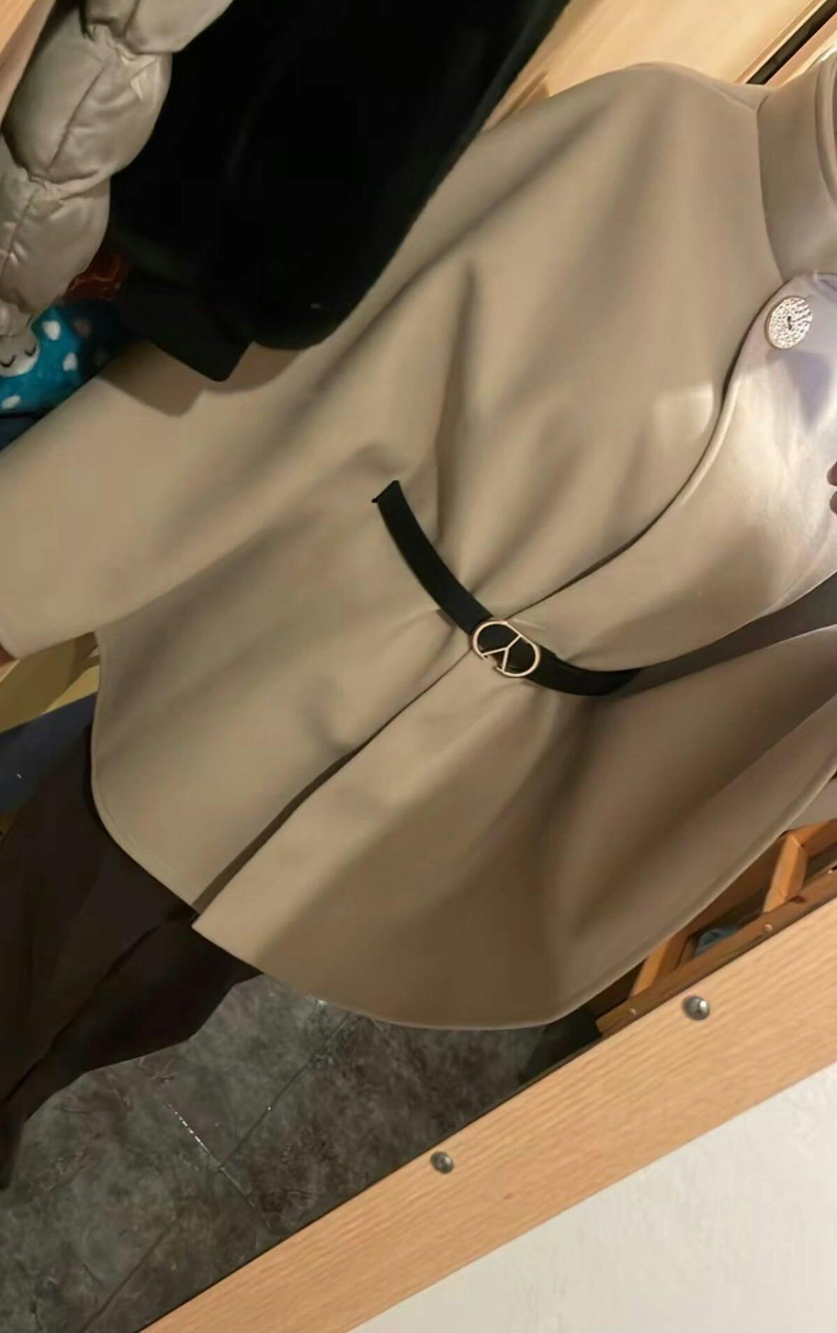 Crafted with a high neckline, button closure, and adjustable belt, it’s the ideal layering piece from autumn through winter — cozy, oversized, and timelessly chic.