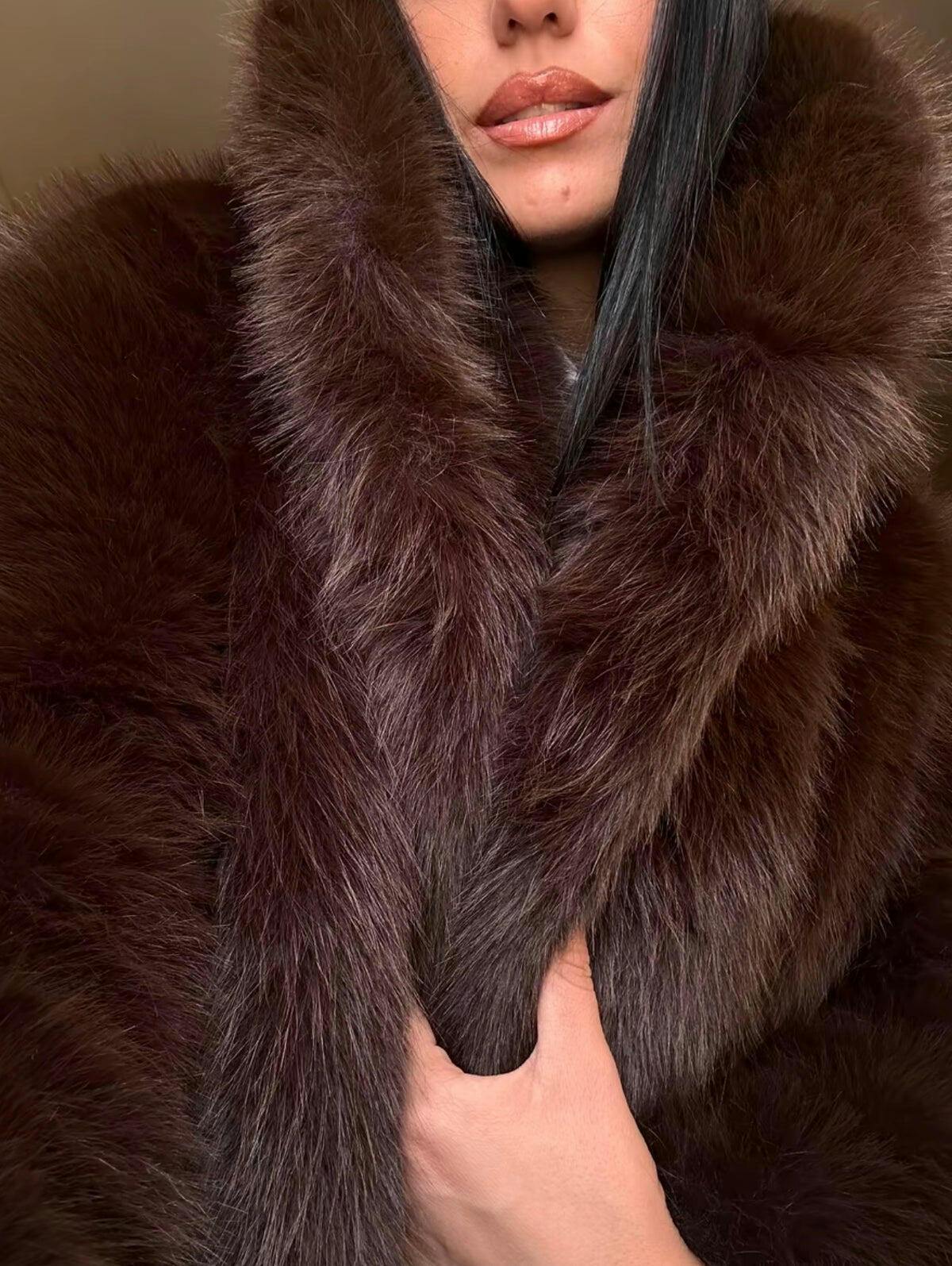 The Plush Faux-Fur Jacket wraps you in warmth and luxury with its oversized collar and sumptuous texture that feels like a dream.